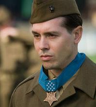 《太平洋》,約翰·巴斯隆佩戴榮譽勳章1904年4月23日,國會審定了勳章的新圖案。新圖案採用了陸軍少將喬治·吉雷斯比的設計,新設計現在仍然在使用。勳章用綬帶懸掛在脖子上,勛表別在左胸前高於其他勳章。