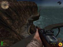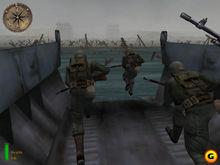 噩夢一般的搶灘戰,戰爭殘酷性的生動再現,簡直就是《挽救大兵瑞恩》的互動版。敵人的機槍雖是密如雨,但不是沒有空隙的,按'c'蹲下走,每一個掩體都是你的救命稻草,仔細觀察、聽,在機槍間歇時移向下一個掩體。戰爭需要勇氣,生存下來的就是英雄,準備接受'美國戰役獎章'吧!