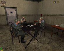 擊沉U_529然後進入一個屋子,迅速換上德軍的衣服,收起通行證件,不要拿武器 (按Q鍵收起武器),不要在警報還沒響的時候去拉牆上的紅色開關。證件只有他們要的時候才給他們看,不要主動給德國軍官看。否則他會認出你的,從此你的征途就是噩夢了。到達一個二樓的屋子裡,換消音手槍幹掉幾個工程師,用手雷炸掉桌子上的設備原型。然後就去找潛艇吧!由於身穿德軍軍服,又有證件,一路平安無事,到達潛艇後,從潛艇上部進去,在潛艇的頭和尾閃光的地方按炸彈,然後一定要迅速逃離!!!!否則你就會體會到庫爾斯克號的悲劇了……離開潛艇後會遭遇數量很大的德軍援軍,建議後退至基地的最外邊用槍清除敵軍,在基地的最深處有通風管道(管道里有守軍),出管道繼續前進,依據螢幕左上角的任務方向指針,從一個門出去,幹掉德軍,到達鐵路,列車上有你的戰友,不要開槍!!!!上車後,過關。