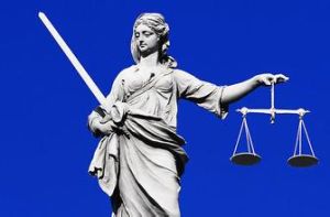 在歐洲中世紀末的文藝復興時代,在古希臘古羅馬藝術復活的同時,羅馬法也在復興,司法女神朱斯提提亞的造像開始出現在各個城市法院。女神仍然沿用古羅馬的造型,一手持劍一手持天平,天平表示“公平”,寶劍表示“正義”,緊閉雙眼表示“用心靈觀察”。造像的背面往往刻有古羅馬的法諺:“為實現正義,哪怕天崩地裂(Fiat justitia ruat caelum)。”