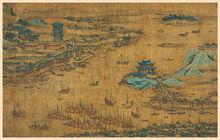 明代武漢三鎮圖兩宋時武昌屬鄂州,漢陽、漢口屬漢陽軍。南宋抗金將領岳飛駐防鄂州(今武昌)八年,在此興師北伐。元世祖至元十八年(1281年),武昌成為湖廣行省的省治,這是武漢第一次成為一級行政單位(相當於現代的省一級)的治所。