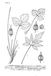 變種與原變種的區別是葉裂片闊卵圓形,葉柄和葉脈上密生粗伏毛,花瓣帶淡紅色,果實圓卵形。