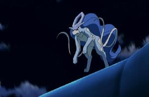 水君水君是一種通體藍色、體型瘦長的四足哺乳動物,軀幹上有白色的鑽石形斑點。水君的面部及其暗面均為白色。水君長有象徵極光的濃密的紫色髯,絲帶似的尾巴向前飄舞。其口鼻部向前突出,呈白色。水君在額頭部位有巨大的六角天藍色頭冠,象徵著麒麟的角。水君有紅色的眼睛,下顎突出,爪子小,有白色爪墊。