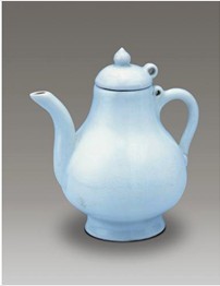 永樂甜白釉暗花鳳紋梨式壺年代:明代