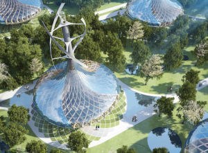 生態城裡可以有汽車,但它絕不會是燃燒汽油的,而是由太陽能、風能來驅動。街道可以窄一點,有美麗、曲線型的迴轉,也不再需要那么多停車場。