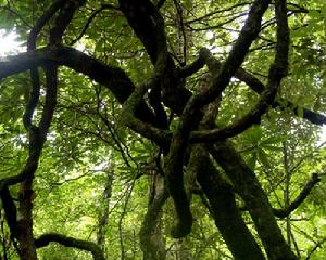 高山矮林:在海拔1700—1780米,位於五府崗景區一帶,主要分布著由烏飯、黃瑞木松科的馬尾松,杜鵑花科的杜鵑以及部分殼斗科植物(如:青岡櫟)等植物。這裡海拔高、風力大、光照強烈、常年多霧、氣溫較低、冬季有霜凍現象,使得樹木生長產生變異,立木生長低矮,樹幹彎曲,且分枝多,形成低矮灌叢。