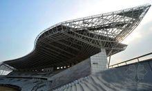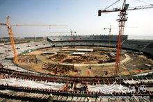 省奧林匹克體育中心主體育場土建部分雖然已經完工,但接下來的工程更為艱巨。安裝頂部的鋼結構挑篷是整個主體育場的點睛部分。據了解,兩塊類似翅膀的鋼結構挑篷,共花費了6000多噸鋼材。而屋面板更是將採用美國進口的鋁鎂錳合金板。