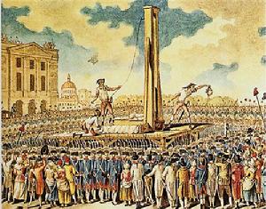 1791年-1794年雅各賓派專政期間,巴黎設定斷頭台,三年內被斬首的“反革命分子”,達7萬人之多,但不少並非保皇黨成員,只是反對雅各賓派的人士。斷頭台遺址即今日巴黎市中心協和廣場。
