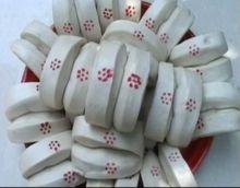 4、形狀獨特。整體為弧形,上彎下平。中央順長裂開。這種樣子便於攜帶。因為饃上裂有長口子,底面又平,所以每兩個饃底面相對為一組,用細草一組一組把幾十個饃拴串起來,走親訪友時,將饃串搭在肩上或掛在胳膊上,很方便。