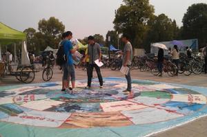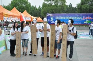 浙江大學學生節能減排協會為了把節水宣傳推廣到社會上,開展了環西湖綠色騎行活動。