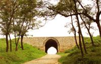 壽唐關在東、西樓山兩山口之間,是鳳台通往壽春的交通要道。西距雙峰山一公里,西邊是煙頂山峰,古時有烽火台,壽唐關全是青磚砌成,關口拱形,可行車馬。兩側據崗巒之山勢,“南綰壽州,北控下蔡”,東邊層巒疊嶂,緊銜古南唐,關前為險坡陡道,兩側青山對峙,頗有一夫當關,萬夫莫開之勢。過關而下,可見“女兒泉”。