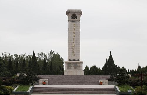 淮海戰役雙堆集烈士陵園淮海戰役雙堆集烈士紀念碑位於烈士陵園中部 ,1980年5月動工興建,翌年10月1日落成。碑高22.5米,白色花崗岩砌成。碑基分為兩層,第一層南北長31米,東西寬31米;第二層長寬各為 25米;四面各有18級台級,開有青松環繞,紀念碑座正面鐫刻紀念碑文,碑身正面刻有鄧小平同志的親筆題詞“淮海戰役烈士永垂不朽!”,上下兩端環萬年青圖案。碑冠鑲嵌淮海戰役勝利紀念章浮雕。紀念碑前鋪設水泥結構的廣場,面積約2100平方米。