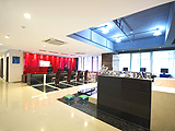 深圳如家七斗星酒店國貿店大堂深圳如家七斗星酒店國貿店開業時間於2006年9月3日,樓高20層,共有客房總數215間(套),標間面積29平米。