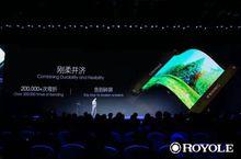 在紐約時代廣場的納斯達克證券交易所樓上,柔宇科技的三大核心技術產品輪番驚艷亮相[G1],包括:全球最薄厚度僅為0.01毫米的彩色[G2]柔性顯示屏,柔宇獨創的柔性觸控螢幕以及全球首創的可摺疊式超高清智慧型移動影院Royole-X 。