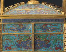 清乾隆掐絲琺瑯獸面紋方鼎中國人習慣於將塗飾在金屬器物表面的玻璃質稱為琺瑯釉。琺瑯釉的主要的成份是矽酸鹽類。需與不同材質的胎體結合,因此在製作技術上要兼顧釉與胎兩者的理化性質;也就是說,這些釉至少應調配到膨脹係數比胎質的小,同時熔點比胎質的低,才能完整的附著在器表以增添器皿的美觀。琺瑯器即金屬胎琺瑯器,是一種集金屬製作與琺瑯釉料加工處理為一體的複合性工藝製品。它既具備金屬貴重、堅固的特點,又具備琺瑯釉料晶瑩、光滑及適用於裝飾的特點。
