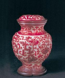 【名稱】清乾隆白套紅玻璃雙合瓶
