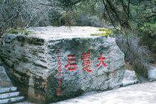 紫氣隕石在烏金山水晶院東天緣谷中。石長約7米,寬約6米,高約2.5米,相傳系女媧補天所余之石。