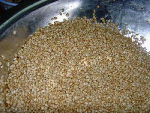 去皮的糯米原料配方:主要是糯米坯(實際投入糯米19.5千克)12千克 、白砂糖14.4千克、 飴糖12.2千克 、熟豬油18千克。