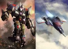 狂飆狂飆是最強悍的變形金剛之一,同時又極富謀略。在噴氣機形態下,他可以在大氣層中達到5馬赫,甚至還能夠達到第二宇宙速度,在太陽系的各個星球間穿梭往來。他的兩翼都裝備了雷射槍,另外還可以投射燃燒彈。在機器人形態下,他手持一把氧化雷射搶,能夠熔化對手體內的機械裝置。