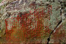 狼山石刻狼山位於中國內蒙古自治區西北部, 屬陰山山脈西段,東北-西南走向。長約370千米,南側以斷崖臨河套平原,北側傾斜較緩,逐漸過渡到巴彥淖爾高原,西端沒入博克台沙漠,亞瑪雷克沙漠及海里沙帶之中。地處乾旱大陸性氣候地帶,山上幾乎無植被,屬荒漠、荒漠草原類型。呼和巴什格坐落在狼山的中部,它東面和北面以陡坡形式臨大壩溝,西南坡度較緩。呼和巴什格山峰是狼山的最高峰,也是內蒙古的最高山,高度2364米。