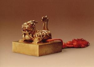 金龜鈕珍妃之印(其一)甄宮一夕滄秦璽,疏勒千年出漢泉。鳳尾檀槽陪玉椀,龍文瓔珞殉金鈿。