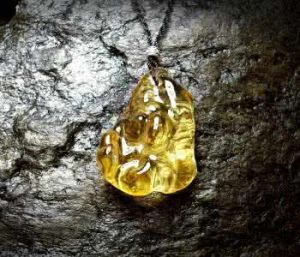 石珀——黃色透明,石化程度較高硬度較大的琥珀。