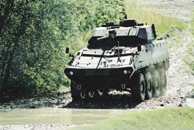 瑞士增強型鋸脂鯉輪式裝甲車具備較高防護能力的“鋸脂鯉”II裝甲車採用了鉚接式附加鋼板。隨後出現了防護力更強的“鋸脂鯉”III裝甲車,1997年被加拿大和美國陸軍所採用,並分別命名為“科迪亞克”和“斯特賴克”裝甲車。這兩種車都安裝了由德國IBD公司研製的陶瓷複合裝甲組件,從而使車輛能夠抵禦14.5毫米B32型鋼芯穿甲彈的攻擊。這種彈藥是非常規部隊所面臨的最大威脅,能否抵禦這種彈藥的攻擊已被作為衡量當前輕型裝甲車輛的防護標準。具備這種防護水平的附加裝甲的重量為1300~1700千克,安裝該裝甲後將降低車輛的有效載荷。