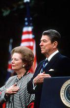 在外交事務上,柴契爾夫人與美國總統里根的密切的政治和個人關係,基於對共產主義的共同的不信任,與自由市場經濟思想相結合。柴契爾夫人被戲稱為英國的“鐵娘子”。她熱烈歡迎改革派的蘇聯領導人戈巴契夫的崛起。
