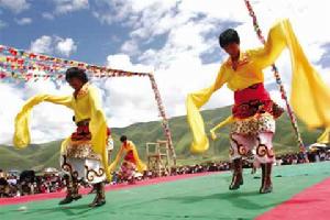 甘孜縣是川西北高原康巴文化生態旅遊重要目的地,無論是神山、聖水、牧區文化、藏傳佛教寺廟文化,還是多姿多彩的民間建築、藏畫、手工藝品及獨具古樸風韻的民間舞蹈、文學藝術等民俗風情都是康巴文化不可分割的一部分,甘孜縣是一個集藏族歌舞種類於一身的“歌舞之鄉”,有在公元八至九世紀傳入的甘孜藏戲、有白利寺五世格達活佛創建於二十世紀三、四十年代的格達弦子。有盛行於上千年的甘孜鍋莊,更有獨樹一幟、決無第二的“甘孜踢踏舞”。踢踏舞藏語稱為“夏卓”,是集“詞、琴、歌、舞、踏點聲”為一體的綜合藝術,表演不限人數,少則一人,多則數百人上千人。表演場地不限,室內、家庭、田間地頭均可興至起舞。