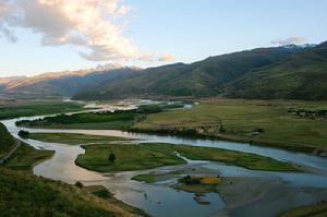 雅礱江景觀帶雅礱江發源於青海南部和四川西北部,這裡有雪山冰川、田園牧場、河灘谷地、高山植被;也有神山聖湖、宗教名勝、歷史古蹟和古樸的民風民俗。集人文景觀與自然景觀於一體,構成了一幅神秘、古樸而又壯麗的畫面。雅礱江從西北向東南流去,流經絨壩岔,流到甘孜鎮,後又繞城離去,在縣境內流長92公里,沿河兩岸土地肥沃,物產茂盛,風光旖旎,是自然景觀與人文景觀的富集地帶。