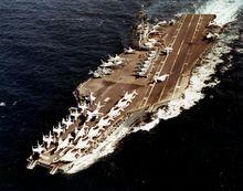 1968年甘迺迪號1968年9月7日,甘迺迪號航母服役,當時它是一艘攻擊型航空母艦,編號為CVA-67。甘迺迪號第一次任務是在地中海巡航,前後達7次,以向蘇聯示威。20世紀70年代初期,它的編號改為CV-67,這就意味著它將負起包括反潛功能在內的全面海上作戰任務。甘迺迪號參加過的最為重大的海外軍事行動是20世紀90年代的“沙漠盾牌”和“沙漠風暴”。當時它率領一個航空母艦戰鬥群從地中海進入紅海,並成為美軍“紅海戰鬥部隊”司令的旗艦。