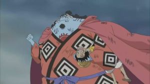 勝利,以 魚人空手道“奧義”武賴貫打穿對手身體,再由 山治以“ 惡魔風腳”地獄的回憶擊敗對方。