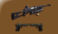 英雄裝備特種武器——雙持沙鷹和榴彈槍雙持沙鷹作為武裝補給箱中才能獲得的武器,其威力自然不用評說。而榴彈槍則是在生化模式Ⅲ中,英雄獨有的武器。普通攻擊方式為單發點射,射擊間隔快於AWP等重型狙擊槍,比連狙稍慢。但是其威力和命中精度則要大大強於重狙和連狙。由於沒有配備瞄準鏡,因此子彈的落點集中於準星周圍,射擊精度相當高。單發子彈的威力在500-1000之間,根據殭屍的護甲會有略微調整,並且帶有明顯的擊退效果。由於射速快,而且無需開鏡,因此在面對單體殭屍時,榴彈槍的點射模式可以有效阻止殭屍的進攻。除了點射模式之外,點擊右鍵可以把榴彈槍切換為榴彈模式。榴彈模式是類似手榴彈的範圍型攻擊,能夠對前方的殭屍造成500左右的傷害,裝彈數為10發,在面對群體殭屍時,能夠發揮出強勁的威力,但是填彈速度較慢是它的致命傷。