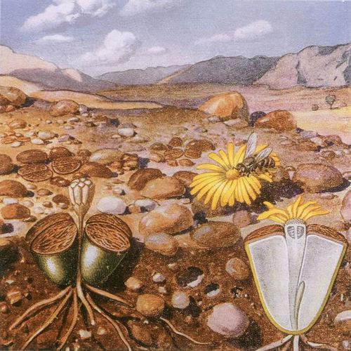 魯道夫·馬洛斯所繪製的生石花於南非原生地的棲息狀態圖