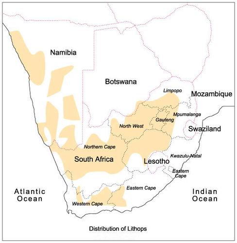 生石花原產南非及納米比亞的岩縫及半沙漠地帶。 世界多地有栽培,供觀賞用。