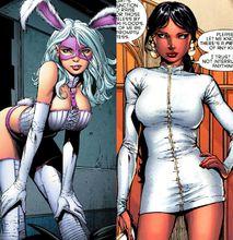吉安娜還有一個身份,那就是超級反派白兔(White Rabbit)。換做是誰誰也想不到這兩個人會是同一個人。吉安娜是美國和印度的混血兒,有著棕色的皮膚,黑色的頭髮和綠色的眼睛。白兔則是一個有著白人的皮膚、白色頭髮、粉色眼睛的女子。吉安娜沉穩冷靜,很有城府。白兔卻性格頑劣,喜歡一邊逃跑一邊嘲諷追逐者,速度之快,以至於蝙蝠俠也無法跟上她。以上這些天壤之別根本無法令人將二者聯想到一起,這偽裝甚至一度騙過了見多識廣的蝙蝠俠。