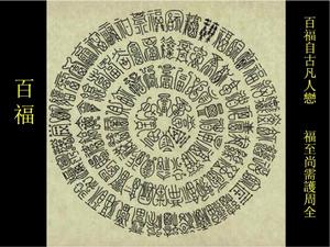 福如東海、翹盼福音、五福臨門、福星高照等都是我們耳熟能詳的詞語。福文化,也是吉祥文化,是中國特有的文化現象。吉祥二字出於春秋的《莊子》,其曰:“虛室生白,吉祥止止。”古往今來,福文化的內涵隨歷史延續而發展,但不管是哪個時代對美好事物和生活的嚮往追求是相同的。古代文人們為了表示對百福的追求,“五福,一曰壽、二曰富、三曰康寧、四曰攸好德、五曰考文命”亦可曰百福。古人以蝙蝠、桃和雙錢,組成“百福圖”、“百福呈祥”等吉祥圖案。以取“蝠”與“福”同音,“錢”與“全”同音,桃象徵壽之意。