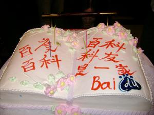 18:30分左右,乘車去【瀟湘府飯店】就餐,百度百科安排了豐盛的歡迎宴會,同時為三位四月生日的同學,定製了一個象徵百科全書的生日蛋糕。當時的場景給人一種,“身在外地,如在家中”的感覺。