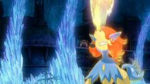 在火車站,小智一行人登上了進城的火車。來到清風車站,火車暫時停靠。一行人來到站台上,在買了很多火紅不倒翁便噹噹作午餐後回到車上。受傷的凱路迪歐摔到了車廂頂,被小智一行發現。凱路迪歐告訴一行人酋雷姆正在追殺它,它正在嘗試逃跑。話音剛落,酋雷姆帶著它的幾何雪花追隨者們來到了,並要求繼續戰鬥。看到酋雷姆的艾莉絲回想起了兒時在家鄉長輩講起的有關酋雷姆的故事。就在這時,列車進入了隧道,酋雷姆無功而返。