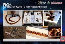 穿閱·中塔——2014 “3D中國行”引進英國最先進的第二代3D朱古力印表機。它採用使用液態朱古力作為“油墨”,讓朱古力從10毫升的“注射頭”勻速擠壓出來,不需要使用模具和手工輔助工具,便可以列印出由操作者設計的種種可以食用的朱古力日用品。