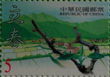 郵票圖案上,遠山溫順,失去了昔日的挺拔放縱;河流沉靜,放棄了往日的歡唱奔騰。花草樹木漸漸變得枯黃,枝葉凝霜。人入舍,鳥歸巢,大地失去了生機。氣肅而凝,露結為霜,一切的一切都在告訴人們,冬天就要到了。