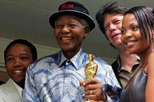 2004年3月底,高6米的曼德拉雕像在約翰內斯堡桑敦商務中心廣場落成,此廣場也更名為曼德拉廣場2005年4月曼德拉夫婦獲得由世界各地數百萬兒童選舉產生的“全球之友獎”。