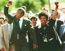 曼德拉與第二任妻子但到後來,隨著地位的不斷提高,溫妮性格中專橫跋扈、野蠻霸道的一面逐漸暴露在世人面前。她崇尚暴力,生活腐化,還發生婚外戀。曼德拉出獄後,發現南非報端充斥著溫妮的醜聞。曼德拉多次苦心相勸,卻無法挽回妻子的心,他曾痛苦地表白,自從出獄後,在與溫妮共同生活的那段時間,他成了世界上最孤獨的人。1996年,曼德拉與溫妮離婚。