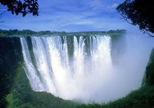 維多利亞瀑布 這是世界上最壯觀的瀑布之一。位於贊比西河上,寬度超過2公里,瀑布奔入玄武岩海峽,水霧形成的彩虹遠隔20公里以外就能看到。