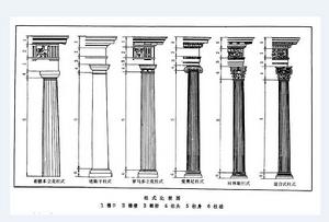 羅馬五柱式,一般包括多立克柱式、愛奧尼克柱式與科林斯柱式。