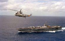 艾森豪號航空母艦戰鬥群1991年1月17日,收復科威特的沙漠風暴行動打響,此時美國海軍在波斯灣地區總共有六個航空母艦戰鬥群,部署在波斯灣的有中途島級的中途島號(USS Midway CV-41)、遊騎兵號以及羅斯福號,部署在紅海的有福萊斯特級的薩拉托加號(USS Saratoga CV-60)以及小鷹級的美利堅號和甘迺迪號(USS John F.Kennedy CV-67)。在“沙漠風暴”戰役期間,羅斯福號平均每天晝夜都派出超過150架次的飛機,在一個多月的空襲中擊毀或重創伊拉克數十個目標,本身最後沒有一架飛機戰損。