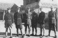 聶榮臻(左三)與左權等紅軍部分將領合影抗日戰爭爆發後,聶榮臻先後任八路軍第115師副師長、政治委員,在忻口會戰中,與林彪共同指揮所部進行了平型關戰鬥,殲滅日軍坂垣師團一部1000餘人,繳獲步槍1000餘支,機槍20餘挺,擊毀汽車100多輛,馬車200餘輛,取得全國抗戰以來第一個大勝利,打破了日軍“不可戰勝”的神話,為中國共產黨和八路軍贏得了國際輿論的稱讚和好評。