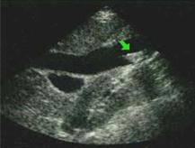 (二)B型超聲顯像具有直視、追蹤及動態觀察等優點。如膽道梗阻而擴張時, 能正確地查出液性內容的所在和範圍,膽管擴張的程度和長度 ,其診斷正確率可達94%以上。應作為常規檢查的診斷方法。