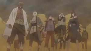 佐助大戰艾之後戰鬥由於“宇智波斑”(宇智波帶土)的介入而中止,其向五影說明要發動無限月讀的意圖,交涉無果後,宣告發動第四次忍界大戰。後眾人決定成立忍者聯軍,保護世界。