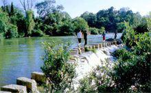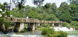 百步橋百步橋,又稱跳墩,因由一百三十多個相隔兩尺左右的石墩立於河上,遊人跳踩石墩而過,故名。